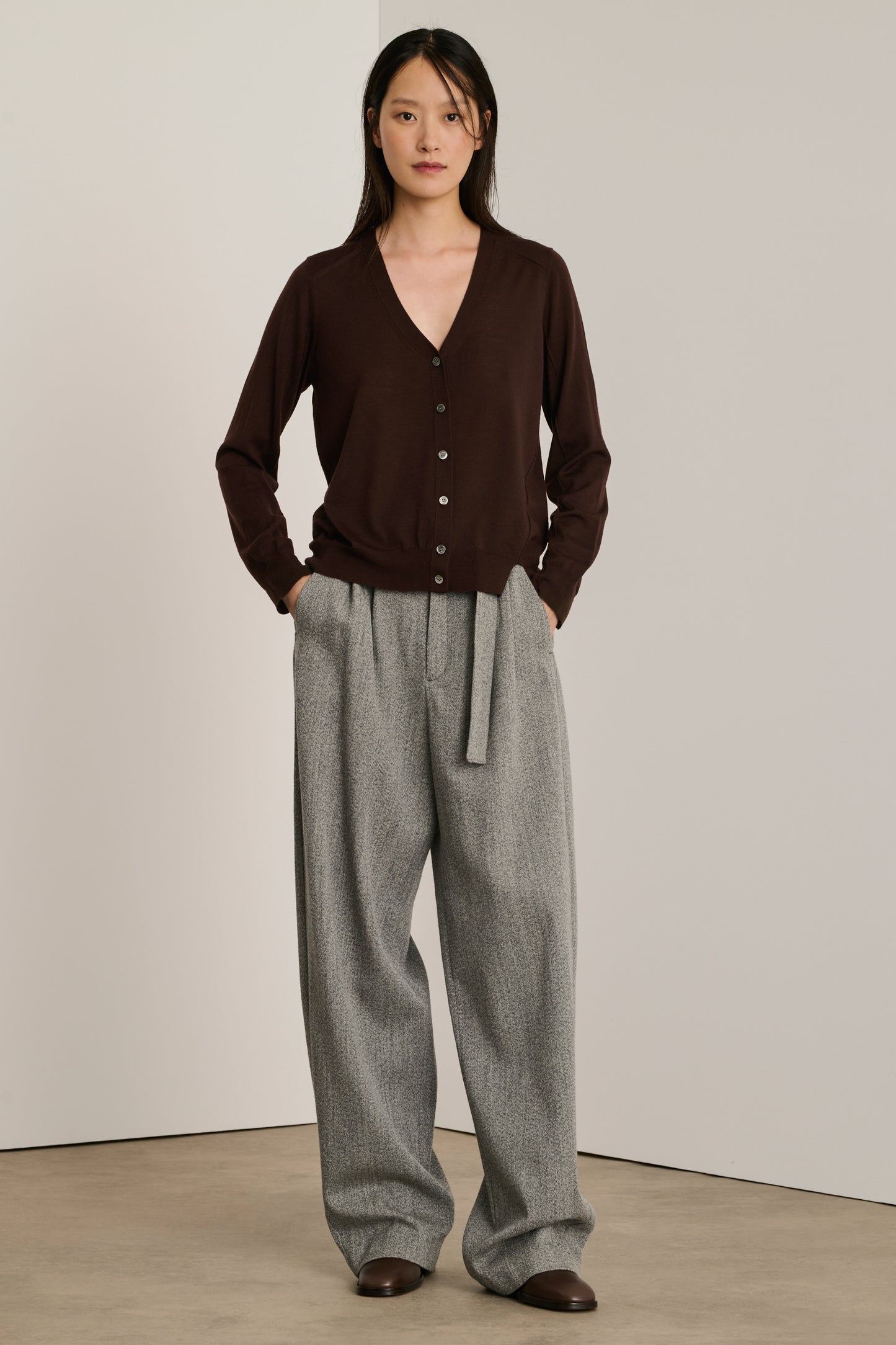 Asymmetric Fine Cardigan chocolate