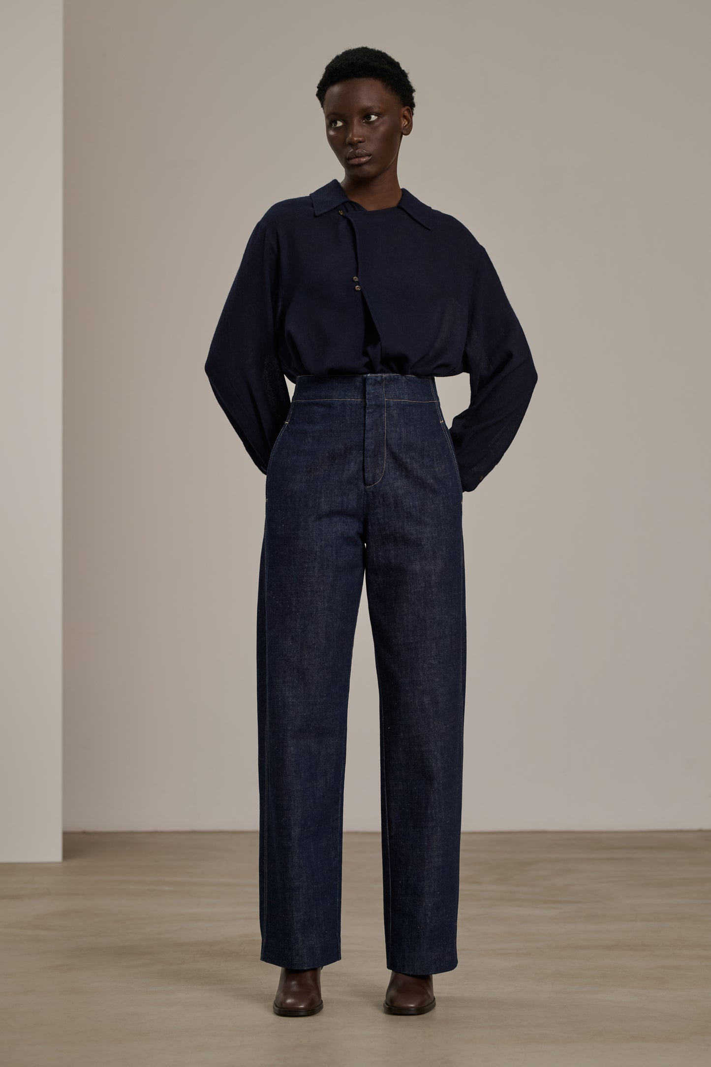 Lightweight Wool Crepe Blouse navy