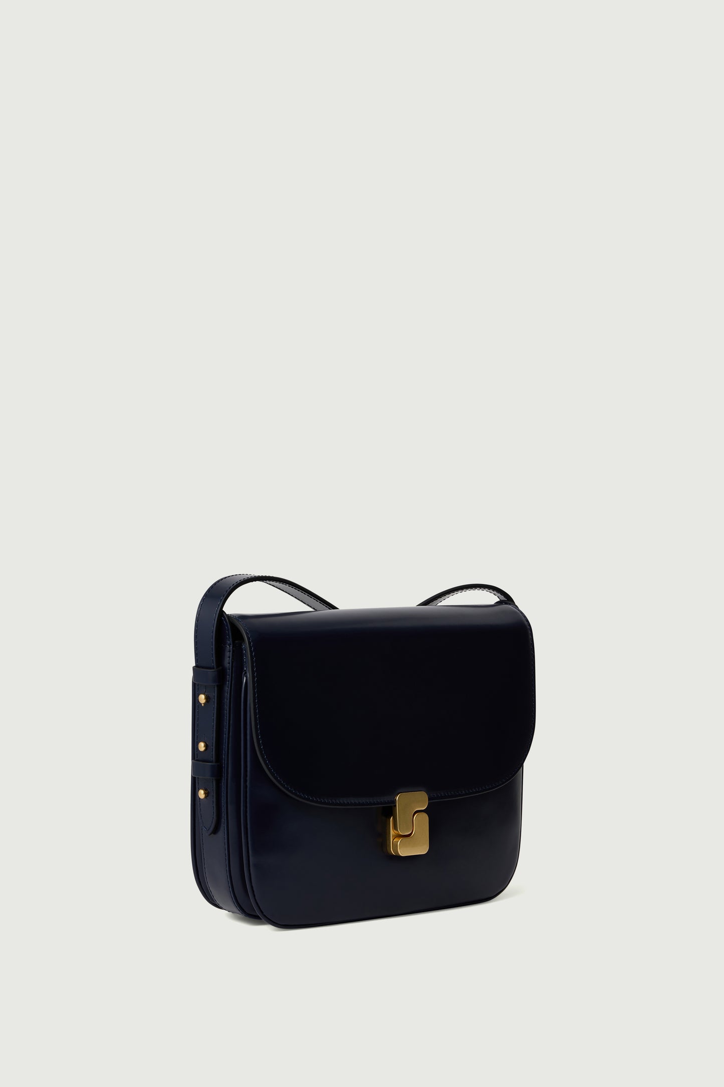 - Large front flap with golden "S" monogrammed clasp